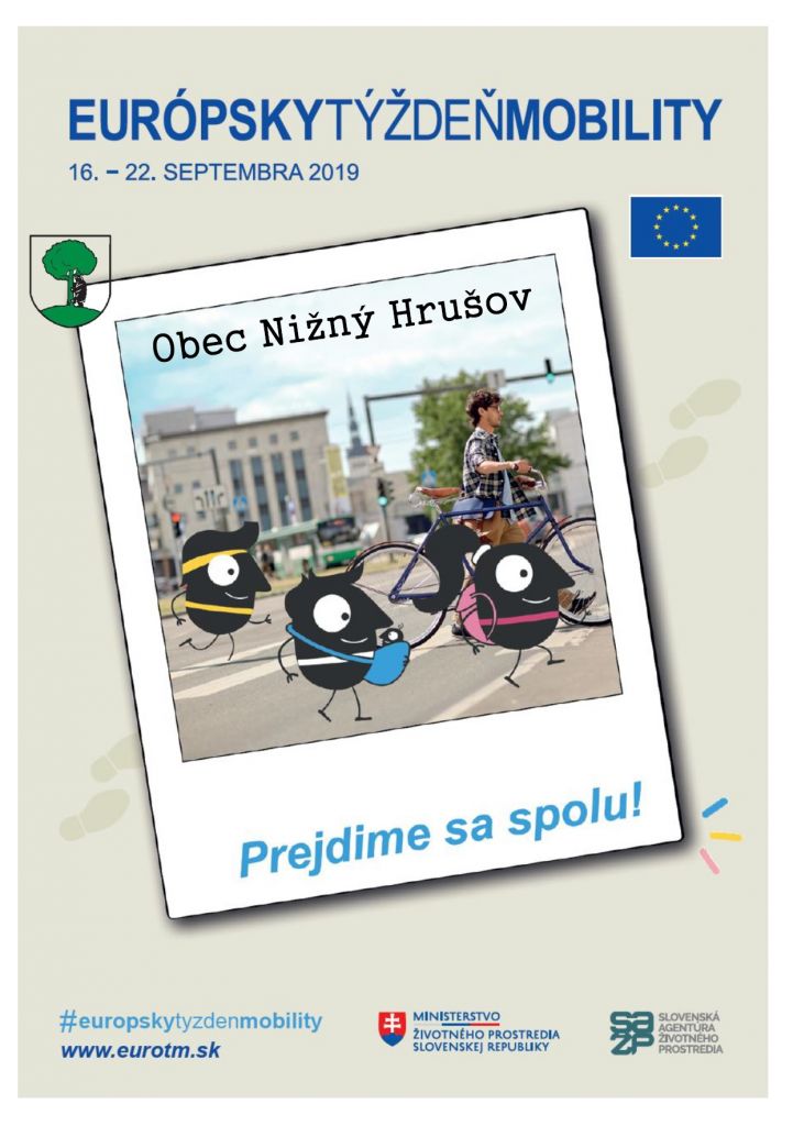 Obec Nižný Hrušov je zapojená do Európskeho týždňa mobility, ktorý sa uskutoční do 22.9. 2019. Témou tohto roku je bezpečná chôdza a cyklistika.