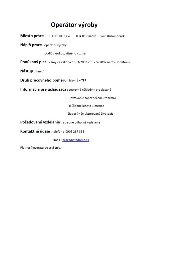Operátor výroby. Viac info tu.