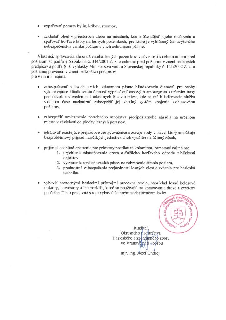 V čase zvýšeného nebezpečenstva vzniku požiaru je každý povinný dodržiavať zásady protipožiarnej bezpečnosti.