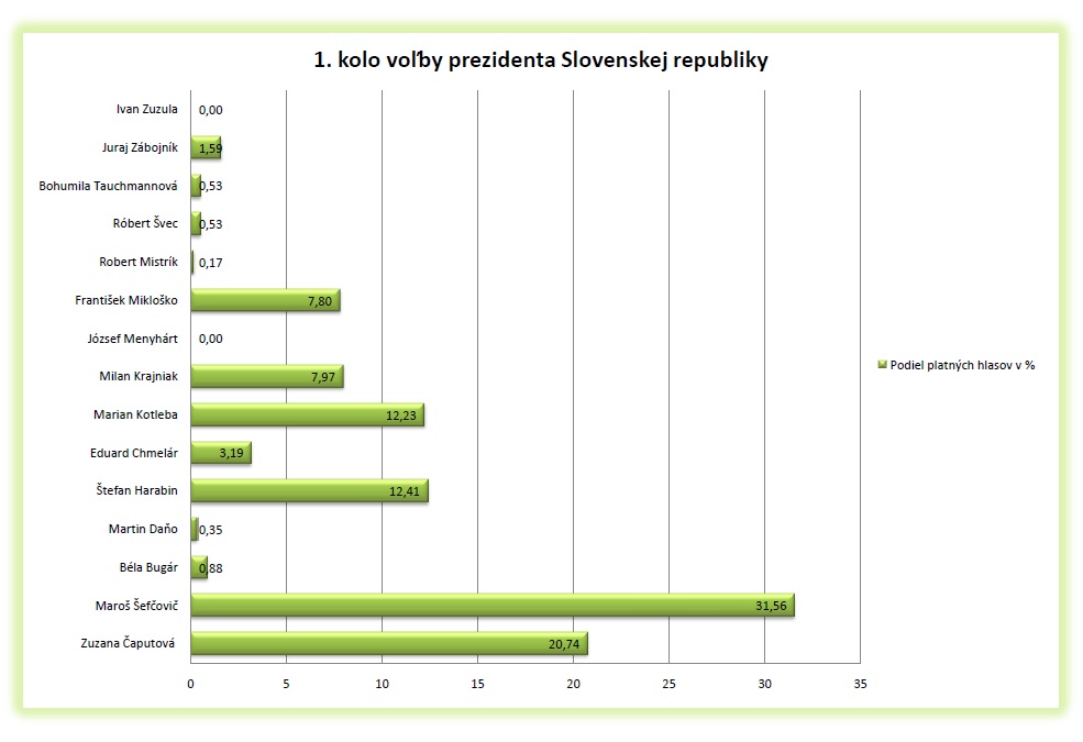Výsledky 1. kola prezidentských volieb Nižný Hrušov