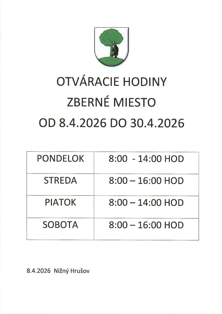 Na zberné miesto obce Nižný Hrušov je možné vyviesť BIO odpad v maximálnom objeme 1 m3 (prívesný vozík za osobným autom).